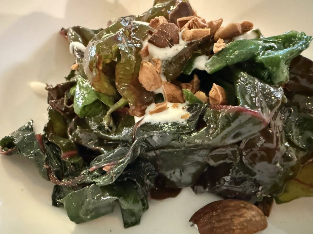 Il finale è emozionante, il piatto che da solo vale il viaggio: la bieta alla brace, bollita nel brodo del grasso di scarto della lombata. Un colpo secco. Vegetale che suona come carne, carne che sembra verde. Ti lascia lì, a chiederti cosa hai appena mangiato.