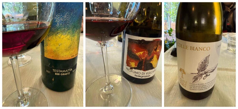 Qui il figlio alza il volume: nei calici arriva il Testamatta di Bibi Graetz. Sangiovese in purezza, frutto nitido, acidità che spinge. Sembra un assolo di chitarra: preciso, avvolgente, verticale. Perfetto per agganciare la brace.