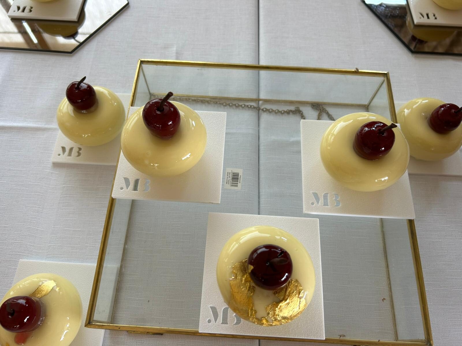 Benedetta D’Antuono, della Piccola Pasticceria artistica Cake Art di Sorrento, ha proposto ‘Tesoro di Napoli‘: una tartelletta di pasta frolla alle nocciole, con coulis di amarene, lemon curd con limoni di Sorrento e glassa a specchio a base di purea di amarena e cioccolato bianco. Di grande impatto la presentazione pensata come una vera e propria ampolla realizzata in pasta frolla, ritagliata con stampi disegnati dalla stessa Benedetta, la cui passione oltre alla pasticceria è la pittura.