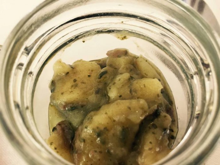 La zuppa di nonna Serafina fa parte dei piatti di sempre che gli antichi clienti vogliono trovare, qui è servita ironicamente in un barattolo. Sapore di materia prima, devo ripeterlo per l’ennesima volta che la Calabria è una miniera d’oro di sapore e di gusto?