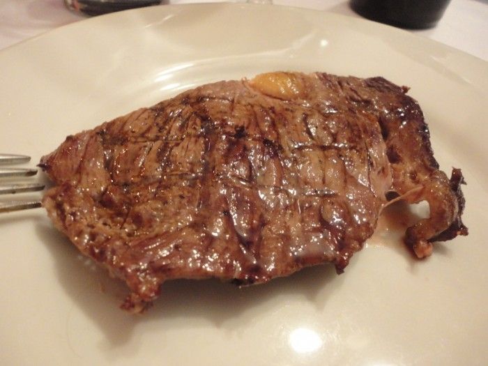 A giudicare dall’indice di gradimento dei commensali, sembra che Amelio abbia ragione anche su questo!!! Ma veniamo al punto : la grande “braciata” con le carni fornite da Mario Laurino. Si inizia da una lombatina di scottona di podolica, marezzata di grasso al punto giusto.