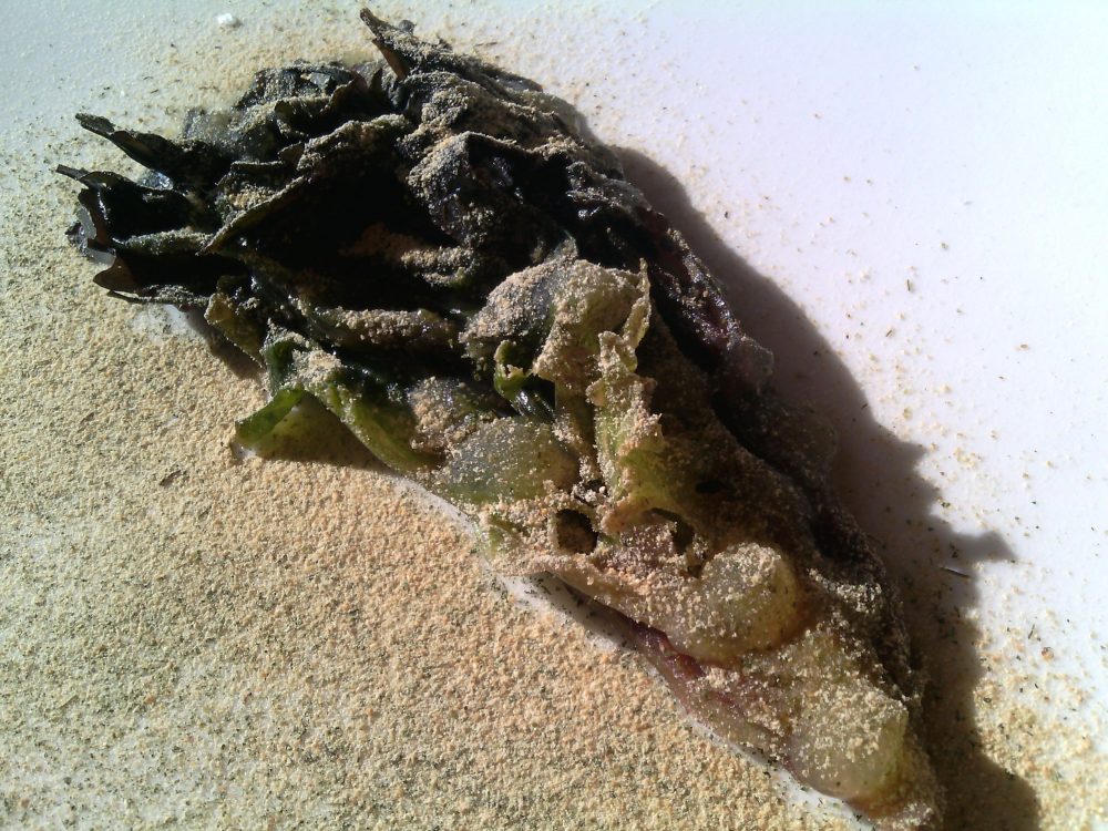 Sanbrite, dessert – Gelato di carciofi, foglie di carciofo fermentate, torta d’orzo, crema d’orzo