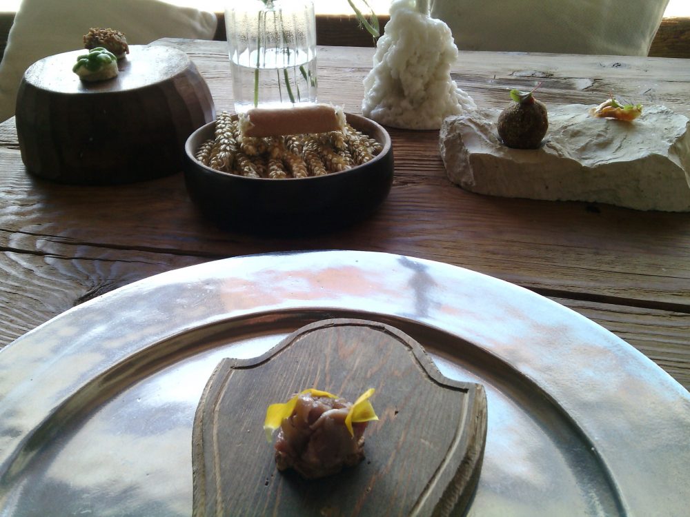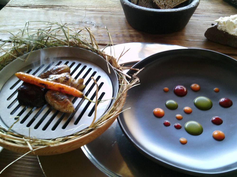 Una idea di cucina che cerca con pochi, pochissimi elementi, spesso poveri e poco considerati (radici, erbe spontanee, quinto quarto, animali da cortile) di trasmettere sapori e gusti di incredibile complessità, simili agli echi romitiani (che si riflettono anche nell’impiattamento) e alla svolta circolare operata da Niederkofler, il quale ha deciso di portare in scena solamente la sua terra nelle varie stagioni.