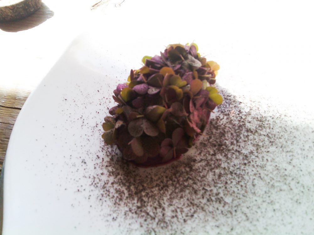 Sanbrite, Tartare di cervo marinat alla rapa rossa, polvere di ossalide