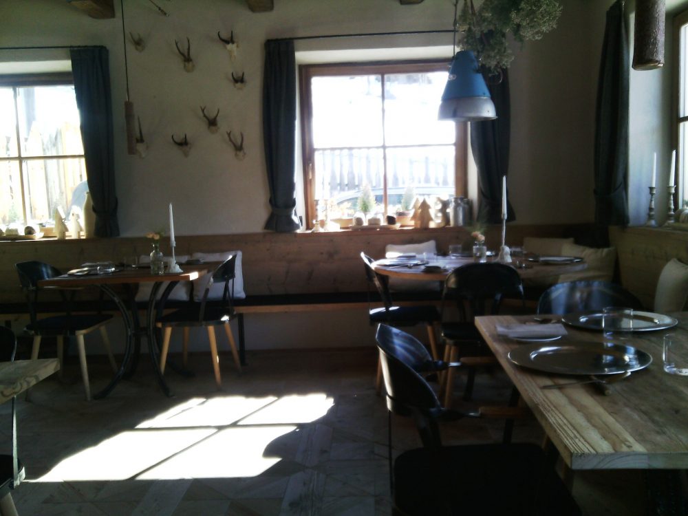 Nel caseggiato in legno chiaro, arredato spartanamente, ma con calore e armonia, arricchito da elementi vegetali e opere d’arte ispirate alla montagna, ci si può sedere attorno agli ampi tavoli in legno, sbirciando di tanto in tanto l’adiacente negozio di formaggi, in cui vengono venduti i prodotti caseari realizzati con il latte delle mucche dell’agriturismo.