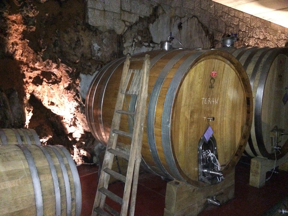 La cantina, come su tutto il Carso, è scavata nella roccia, tutti enormi caveau blindati che custodiscono il succo della terra…