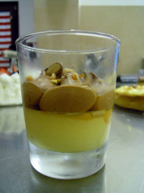 In preparazione ‘ganache’ al frutto della passione, ai lamponi, alla vaniglia e al cioccolato fondente per la lezione su ‘I Macarons’