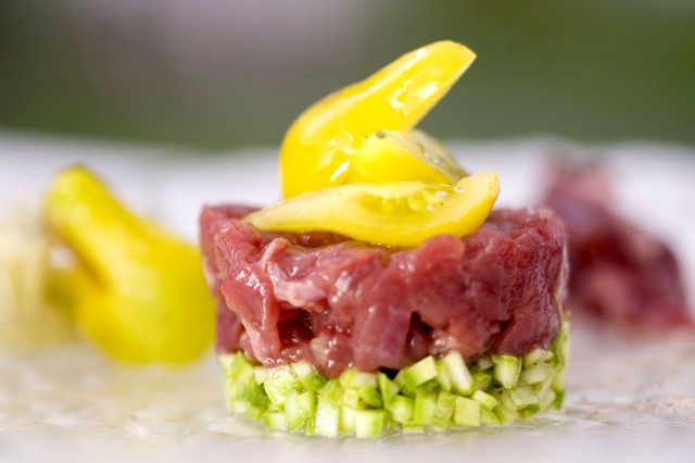 Matteo Pieretti, INGREDIENTI: il meglio che madre natura ci dona in ogni stagione, il pesce della cooperativa pescatori retinai, di Viareggio, le verdure dei contadini, se non quelle dell’orto, e che orto, curato direttamente dallo chef Matteo Pieretti, le carni più rare con i tagli nobili ed il quinto quarto, e non per ultima un’inarrivabile insalatina della signora Lia, formata da oltre 20 tipi di erbette raccolte una per una a mano fra campi e poggetti.