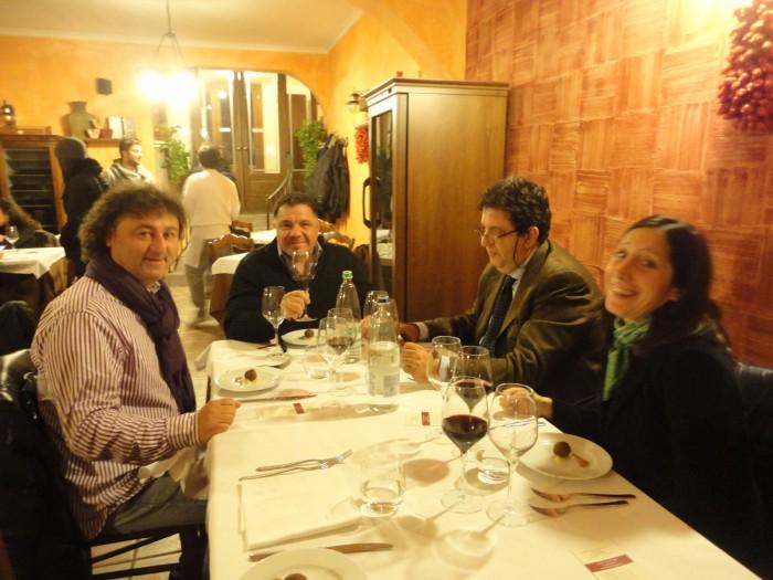 La compagnia era bella, c’era quella bella faccia di Pasqua di Alessandro Barletta, anima di Slow Food Taurasi e Slow Wine interregionale, Marcella Russo produttrice di vino a S. Angelo all’Esca, avvocato a Roma, tennista a tempo perso (più che altro predilige fare sfilate di gonnellini alla Flavia Pennetta), sedeva con noi anche Giovanni Molettieri, enologo e patron dell’azienda vitivinicola, figlio del grande Salvatore, nonchè l’ottimizzatore degli ottimizzatori (abbiamo collezionati solo 360 km…in questa giornata), al secolo Luciano Pignataro detto il Pigna.