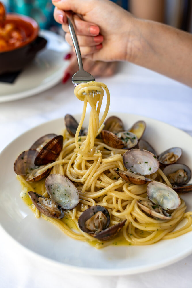 A pranzo, una pausa leggera ma curata, perfetta per chi vuole concedersi un’esperienza gourmet senza eccessi: piatti classici come lo spaghetto alla Nerano (proveniente da Nerano e amatissimo a Capri), gnocco alla sorrentina e caprese con mozzarella e pomodoro.