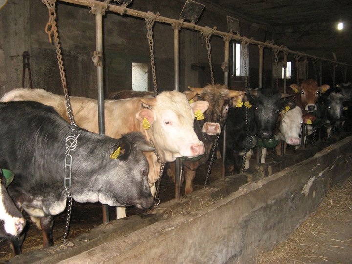 Nella grande stalla convivono mucche, i vitellini nati da poco si nascondono timidi e timorosi dietro la rassicurante sagoma materna mentre conigli di ogni grandezza e colore saltellano in po’ ovunque.
