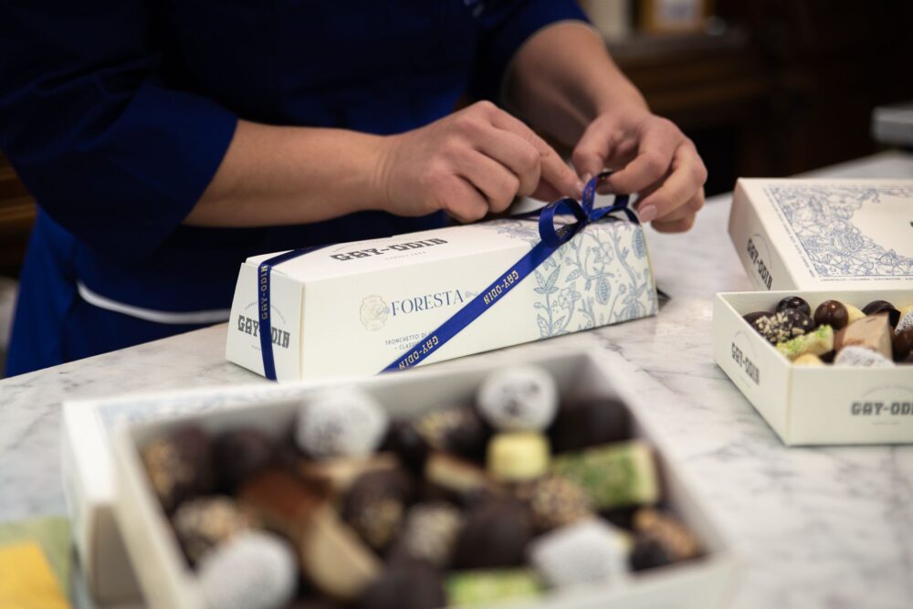 Con l’inconfondibile aroma del cioccolato Foresta che torna a casa, e si diffonde su via Chiaia dal civico 237. Qui ha riaperto, dopo un restauro preciso e filologico, la prima bottega in stile Art Nouveau avviata alla fine dell’Ottocento da Isidoro Odin, confettiere piemontese di origine svizzera e da sua moglie Onorina Gay, cresciuta in una famiglia di maitre chocolatier, che a Napoli vissero matrimonio e sodalizio imprenditoriale nel nome del cibo degli dei.