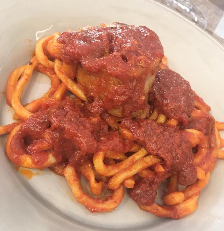 Ora, non pretendo che tutti possiate fare un pasto come il mio, perché bisogna essere allenati, ma già se vi fate, un assaggio di salumi del papà, ed un piatto di maccaronara con sopra una rondella di cotica imbottita , ed un calice di vino, vi consolate.