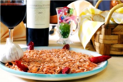 Stoccafisso all’insalata o con patate, iammarielli, parmigiana di melanzane, mèscete, lagane e ceci, pasta e fagioli, anguille fritte, queste le pietanze che si possono degustare, sempre condite con olio extravergine di oliva delle colline salernitane.