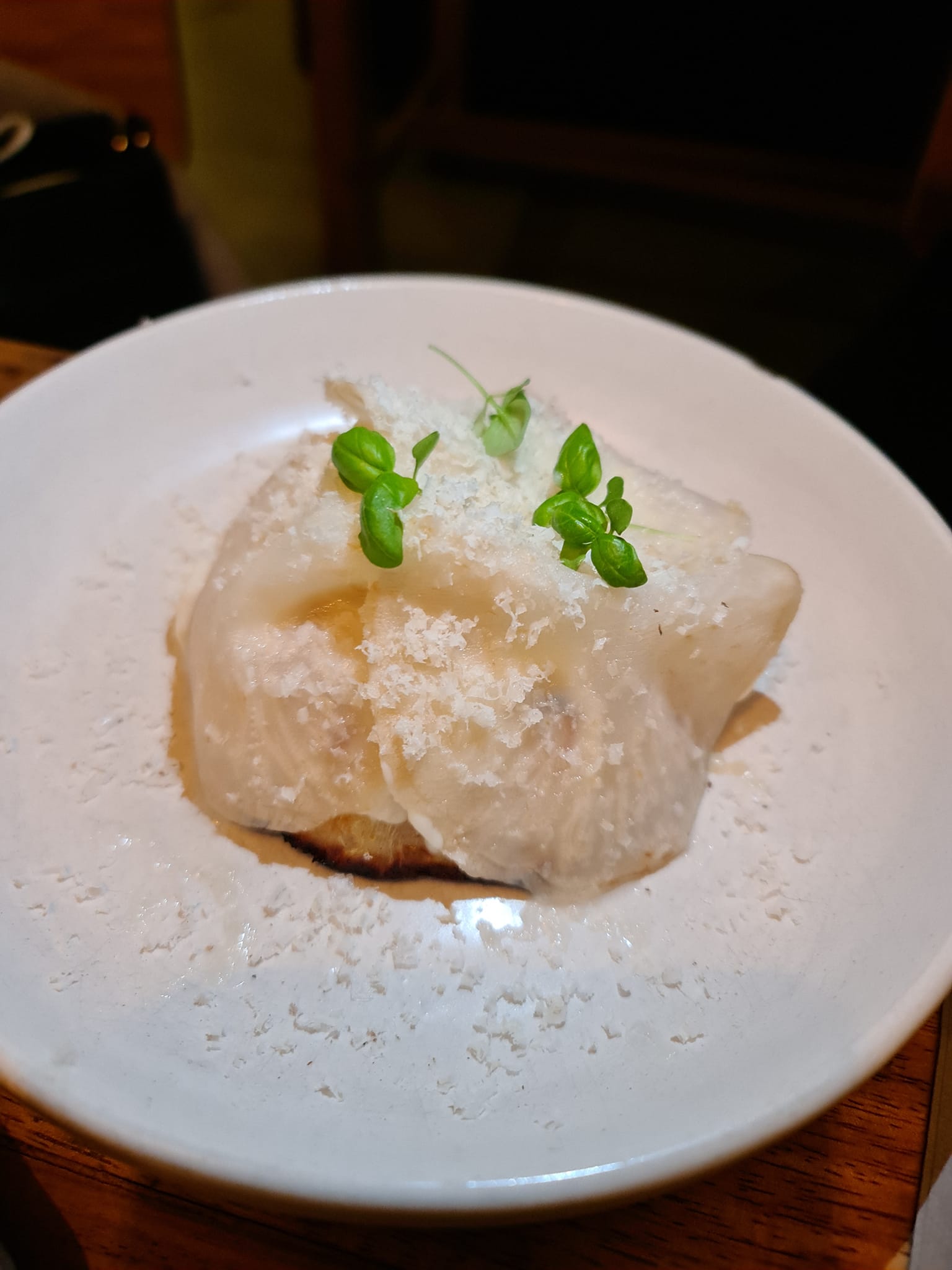 Complesso il lavoro sulla zucca (zucca in diverse consistenze, misticanza e nocciole), diverse lavorazioni sul vegetale e diverse consistenze. La nocciola a crudo e come topping completano questa pizza dalla tinte forti e sorprendenti. Tra gli antipasti il sedano rapa in cotto nel forno a legna, il mattino dopo, assume una consistenza quasi fondente, davvero interessante. Ottime le verdure fermentate. Fantastici i salumi realizzati tutti in casa, con un proscitto cotto davvero eccellente.