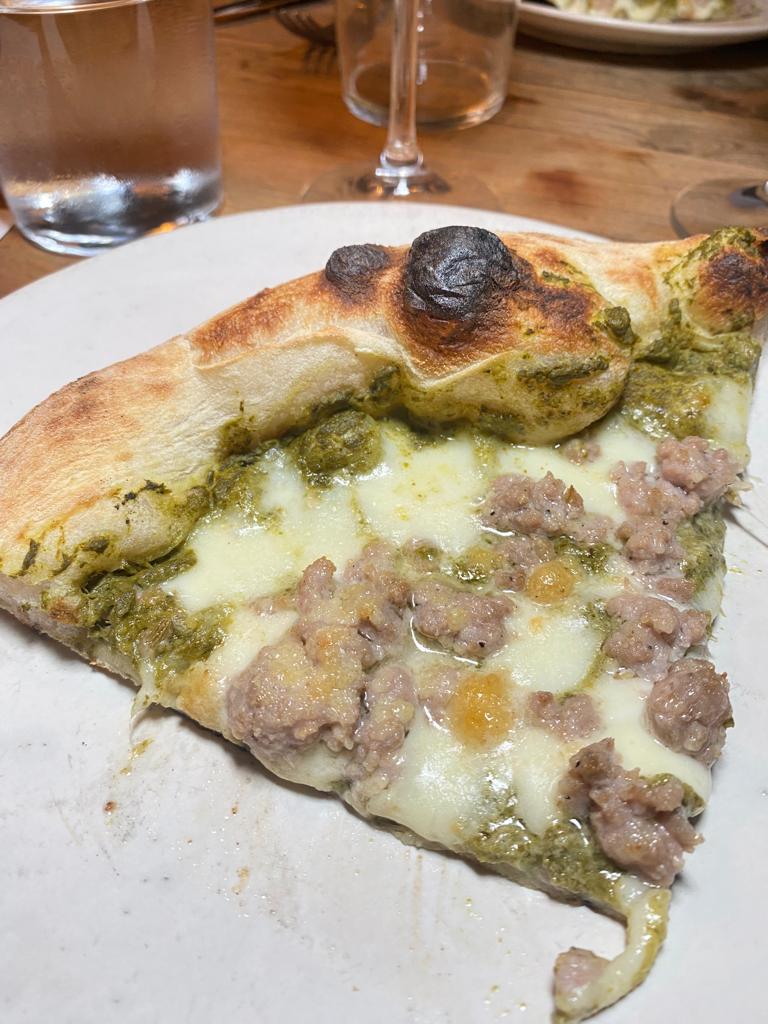 Si inizia con l’arte bianca e assistiamo prima a tre passaggi del pizzaiolo ospitato per poi concludere con una pizza dei padroni di casa: “Oggi ho fatto il ragazzo di Martucci” dice sorridente Rafa, soddisfatto di quanto stesse accadendo e fortemente ironico grazie alla sua grande consapevolezza del proprio valore. Si inizia con Le Mani di Velluto by Francesco Martucci. Crema di friarielli in acqua di ricotta, mozzarella di bufala campana DOP, salsiccia di palatello teanese, pecorino dei Monti lattari e olio extravergine di oliva cilentano del frantoio Madonna dell’olivo. In abbinamento alla pizza un riesling, Terra Prima Can Räfols dels Caus -D.O. Penedès Xarel.