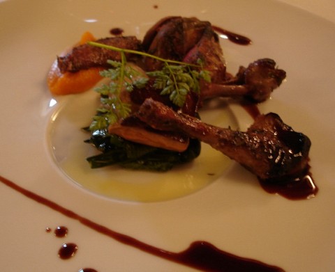 PICCIONE ALLA GRIGLIA , ZUCCA, CATALOGNA E RIDUZIONE AL VINO ROSSO