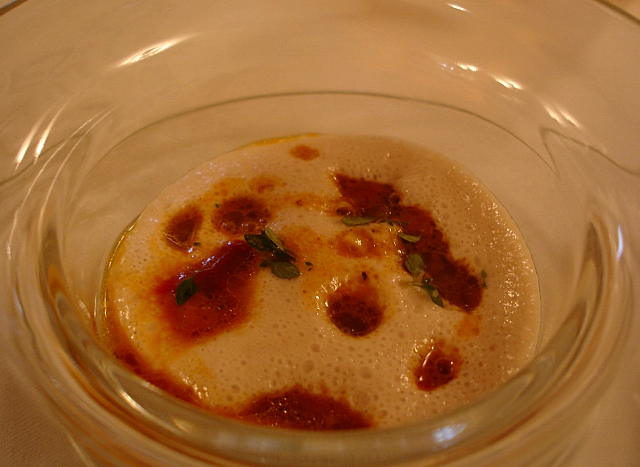 Ottimo pranzo, anche la spuma di midollo con i ricci che d’impatto è strong quanto lo fu il cervello di capretto ecc.., un cucchiaio basta per capire tante cose, per esempio l’aggiunta di qualche cimatura di timo al limone, varietà non so quanto diffusa in Italia, ma caratterizzante in maniera unica e rinfrescante.