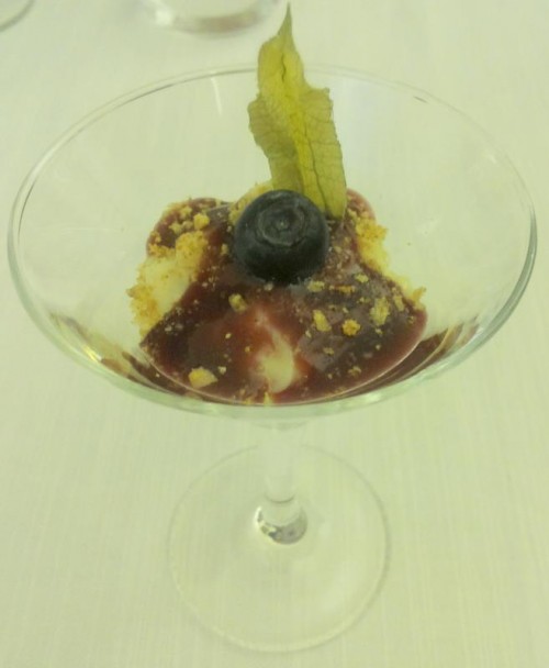 Ancora crema ai cereali e uva fragola in pre dessert e finale in dolcezza con la mousse di ricotta e cannella con cialda alle mandorle e crema di zucca di Bagni.