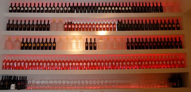 Le vecchie e capientissime vasche di cemento sono state adattate a bottaia ed una parte del pianterreno è stato trasformato in luogo di degustazione, con una scenografica e luminosa parete di bottiglie a ravvivare lo spazio.