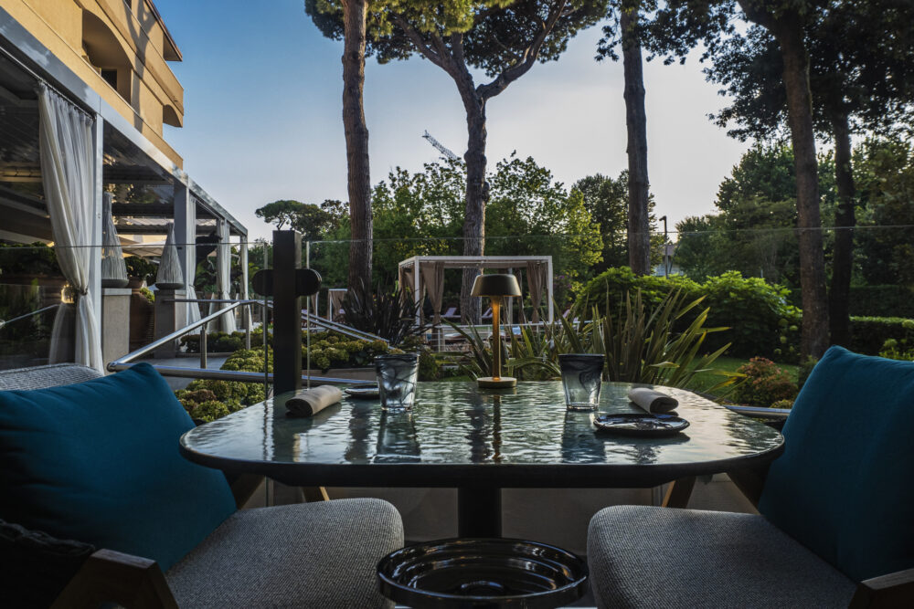 Il St.Mauritius Hotel, 4 stelle in Forte dei Marmi, si erge tra l’imponente verzura nel cuore della piccola e preziosa cittadina versiliese, accarezzato da pini marittimi maestosi, corsi d’acqua e un’atmosfera rilassata, quasi magica. Design e funzionalità, il St.Mauritius si presenta come luogo incantato, dove staccare la spina diventa un’operazione quasi automatica. Cosa che avviene anche varcando la verde soglia dello Sciabola, il suo ristorante, addobbato in stile ultra moderno, di classe, minimale, da bistrot che elimina tovagliato e fronzoli, sempre in rispetto della discrezionalità e della comodità del cliente. Davvero un locale fascinoso che ci permette, tra l’altro, di ricordare dove avevamo lasciato lo chef Alessandro Ferrarini, già stella Michelin del Franco Mare, dopo la rivoluzione filosofica (diciamo così) dello storico stabilimento di Marina di Pietrasanta.