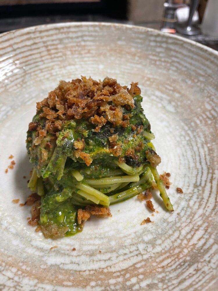 E così finalmente Oliver può portare la propria esperienza nei suoi piatti. Al centro di tutto c’è il rispetto del territorio e – di conseguenza – dei prodotti che questi offre in base alla stagione: “diamo molta importanza alla stagionalità quindi i piatti girano spesso, sicuramente andiamo fieri dei piatti più “poveri” che parlano di territorio come la pasta con le alici fresche, mandorle pizzute, uvetta al marsala, pesto al finocchietto selvatico e mollica di pane tostato”.