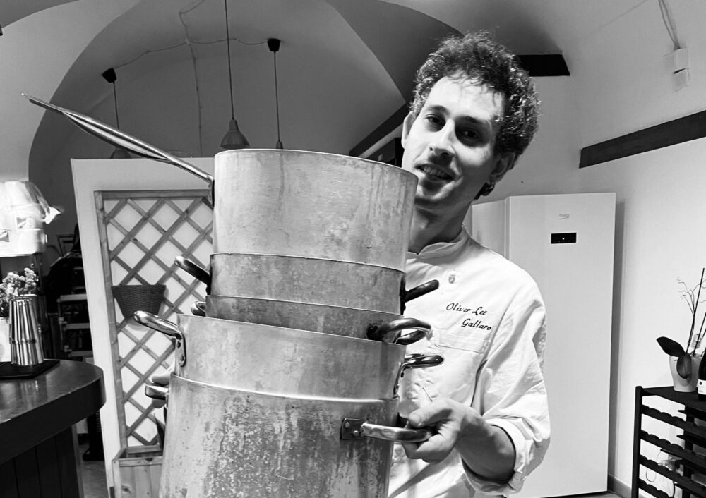 Per arrivare fin qui, chef Gallaro – come è stato accennato poco sopra – ha lavorato in diverse cucine su e giù per lo Stivale. La prima tappa del suo viaggio è stata Bologna, dopo però Oliver ha “sentito il bisogno di alzare l’asticella in termini di tecnica, manualità e gestione della cucina in generale”. Così nel 2017 è tornato in Sicilia per lavorare alla locanda Don Serafino nella brigata stellata di chef Vincenzo Candiano come capo partita ai primi. “È stato un periodo di passaggio fondamentale per quella che oggi definisco “la mia mano”. Tradizione locale, tecnica ed eleganza nell’impiattamento: ho un gran bel ricordo di quel periodo. Chef Candiano è colui che si può definire un grande mentore, ma al contempo un amico sempre presente. Ho un bellissimo rapporto anche con il sommelier della locanda Carmelo Dipasquale, figura leggendaria nel settore dell’enologia e dell’alta ristorazione, che mi ha aiutato ad impostare molti aspetti della sala ancor prima che nascesse Sesamo”.