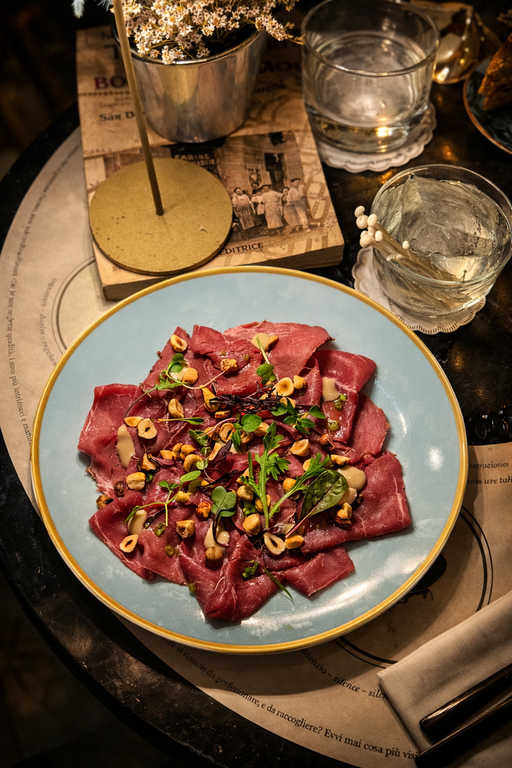 Il sigillo di San Lorenzo (Carne salada, senape, capperi, salsa alla nocciola)