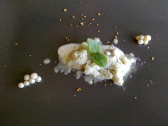 E’ l’ora dei secondi piatti. Sontuosi. Quasi barocchi. E quindi spiazzanti. Ma come? Sushi & susci, il crudo minimale, l’essenzialità. Dove sono? Dov’erano quando Moreno li ha partoriti? La costoletta di rombo con pastella alla birra chiara, erbe di campo e trippa di coda di rospo sembra uscita da un pranzo regale di François Vatel.