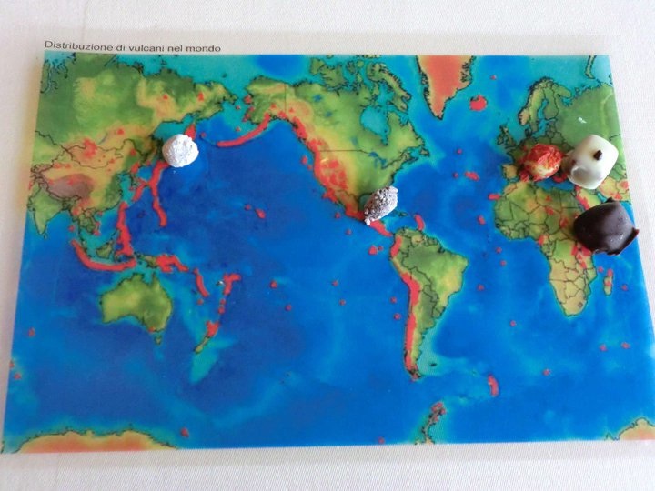 Gioco finale per la piccola pasticceria: la cartina geografica dei vulcani del mondo, con sopra praline di cacao ai diversi sapori che millenni di storia hanno fatto esplodere su di noi. E sulle nostre tradizioni alimentari.