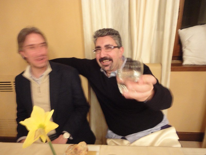 Giusto per dovere di cronaca , Bernardo Conticelli e amici sono . venuti in Irpinia per Raffaele Pagano , che con grande spirito di generosita’ e grande senso di gruppo , al fine di migliorare ulteriormente le sinergie all’interno del gia’ affiatato gruppo dei Diversi Vignaioli Irpini , ha esteso le visite ai suoi consorziati e non solo. Difatti e’ proprio da Raffaele che si e’ tenuta una splendida degustazione nell’accogliente e raffinata maison Joaquin. La ricerca , l’estro , con il filo conduttore della grande qualita’ dei vini di Raffaele hanno portato fino in Irpinia i nostri graditissimi ospiti. Una 203 piante a Lapio senza precedenti, ha letteralmente stregato anche i sei sommelier sempre in visita da Raffaele. Mirko poi e’ stato bravissimo, tutti i miei complimenti, a me personalmente piace anche la cucina irpina rivisitata oltre quella irpina, non capisco perche’ non possa essere rivisitata…. c’e a chi piace e a chi non piace . A coloro che la gradiscono, … : andate da Mirko.