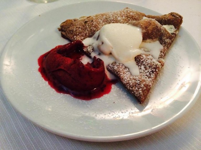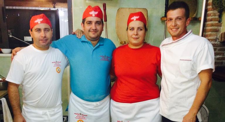 Così dalle 22 a mezzanotte sui tavoli sono passate le creazioni di Eduardo: pizza fritta napoletana, a libretto, classica napoletana con filetto di pomodoro San Marzano, basilico e mozzarella di bufala campana; e quelle di Angela: scazzoppoli allo zafferano con bufala su letto di sugo di pomodoro nero; pizza al germe di grano con peperoncini verdi, pomodorini gialli e provolone del Monaco; pizza variegata al gelato nei gusti latte di mandorla e gelsi della mitica Gelateria Mennella di Torre del Greco.