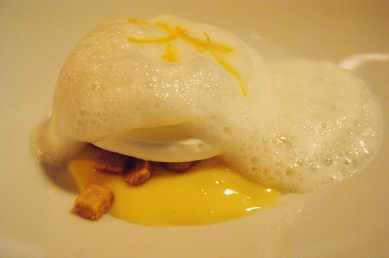 Per il dessert, lo chef ospite ha voluto rivisitare un dolce noto ai più col nome di “Delizia al limone”, rendendolo con alcune tecniche gluten free, creando una base con biscotto di mandorle, e adatto anche per gli intolleranti al lattosio grazie all’emulsione dell’uovo con olio extra-vergine d’oliva.