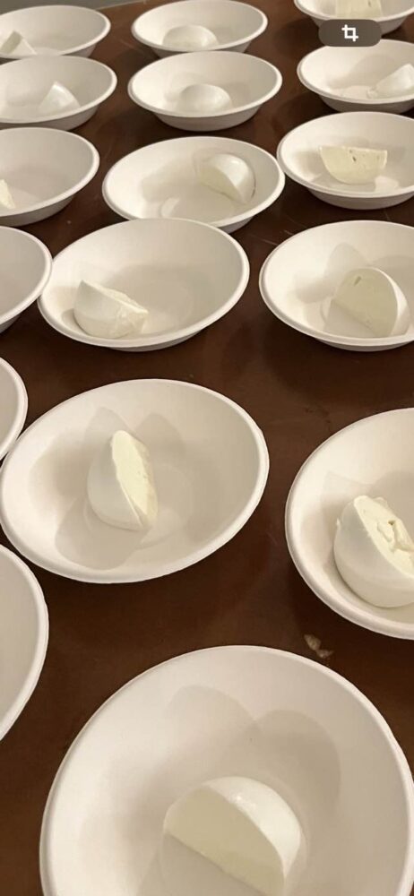 La degustazione di Mozzarelle ha visto i prodotti del Caseificio Costanzo di Aversa e del Caseificio Schiavone di Casal di Principe confrontarsi con quella di un caseificio locale friulano. Diverse consistenze, diversa sapidità, con i convenuti che si sono cimentanti nel coglierne le differenze guidati nell’analisi sensoriale da Farina e da di Nuzzo.