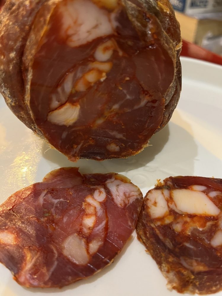 Di serate belle sui salumi ne facciamo parecchie. Questa merita di essere raccontata. Non capita spesso di avere al taglio un prosciutto di suino (nero) casertano di 32 mesi e di suino mangalico di 36, più una ventricina di Vasto a fare da contorno.