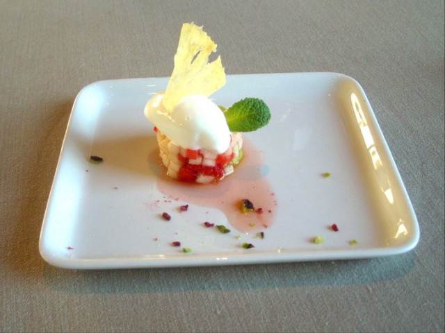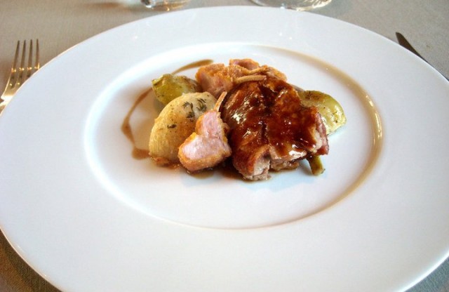 Adesso non mi dire che lo vedi dalla foto, che quel risotto era di altissimo livello. Lo dicevo col maitre Ostorero che stavo imparando a “leggere” i risotti e che quello in effetti, opponeva la giusta resistenza, i chicchi si potevano contare senza inciampi, veramente luccicava e, bada bene, contrariamente al solito, lo fanno per singole porzioni, tutto per te. L’animella è cotta nel latte e la crosticina era uno spettacolo. Beh, via, sto cominciando a capirci qualcosa, allora…