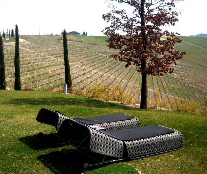 I come impressione: ecco proprio guardare dall’alto, nel caso del Boscareto Resort, consentirebbe di capire quanto in realtà il suo contestato disegno sia parte di un paesaggio più grande, non solo geografico. Guardarlo poi dall’interno è una sorta di privilegio, punto di vista straordinario sul mare verde delle colline di Langa, ma anche sintesi di idee e intraprese, di partecipazione e conoscenza. Così a contare non sarà la prima impressione, e nemmeno la seconda: solamente dopo un minimo di curiosità, di pazienza, forse si potrà cogliere un senso compiuto, un filo rosso rivelatore di quell’esperienza. Un po’ di fatica restituisce bellezza, quasi un tesoro da scoprire.
