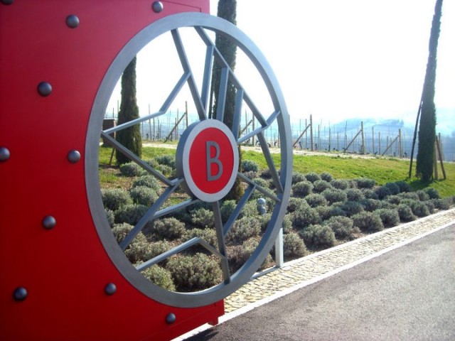 I come Italia: sono giorni di bandiere a festa, in sulla cima della collina il grande cancello rosso incornicia ordinati filari di vigneti e terre verdeggianti, delimitati dalle righe bianche delle strade sterrate che disegnano, come sopra pensiero, i bricchi di Langa, tra campanili e castelli, amori e Risorgimento. Un invito a non dimenticare.
