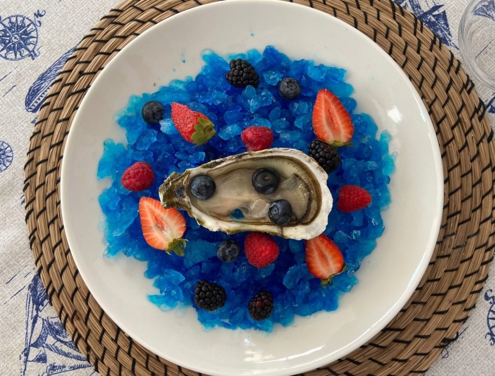 Un piatto nato come omaggio alla squadra di calcio della città di Caserta (ne riprende i colori rosso e blu) che si è trasformato in una pietanza simbolo e richiesta dalla clientela: L’Ostrica Casertana, ostrica San Michele allevata nel Gargano, accompagnata da frutti rossi. Il tocco particolare arriva con una salsa “segreta” servita a parte.