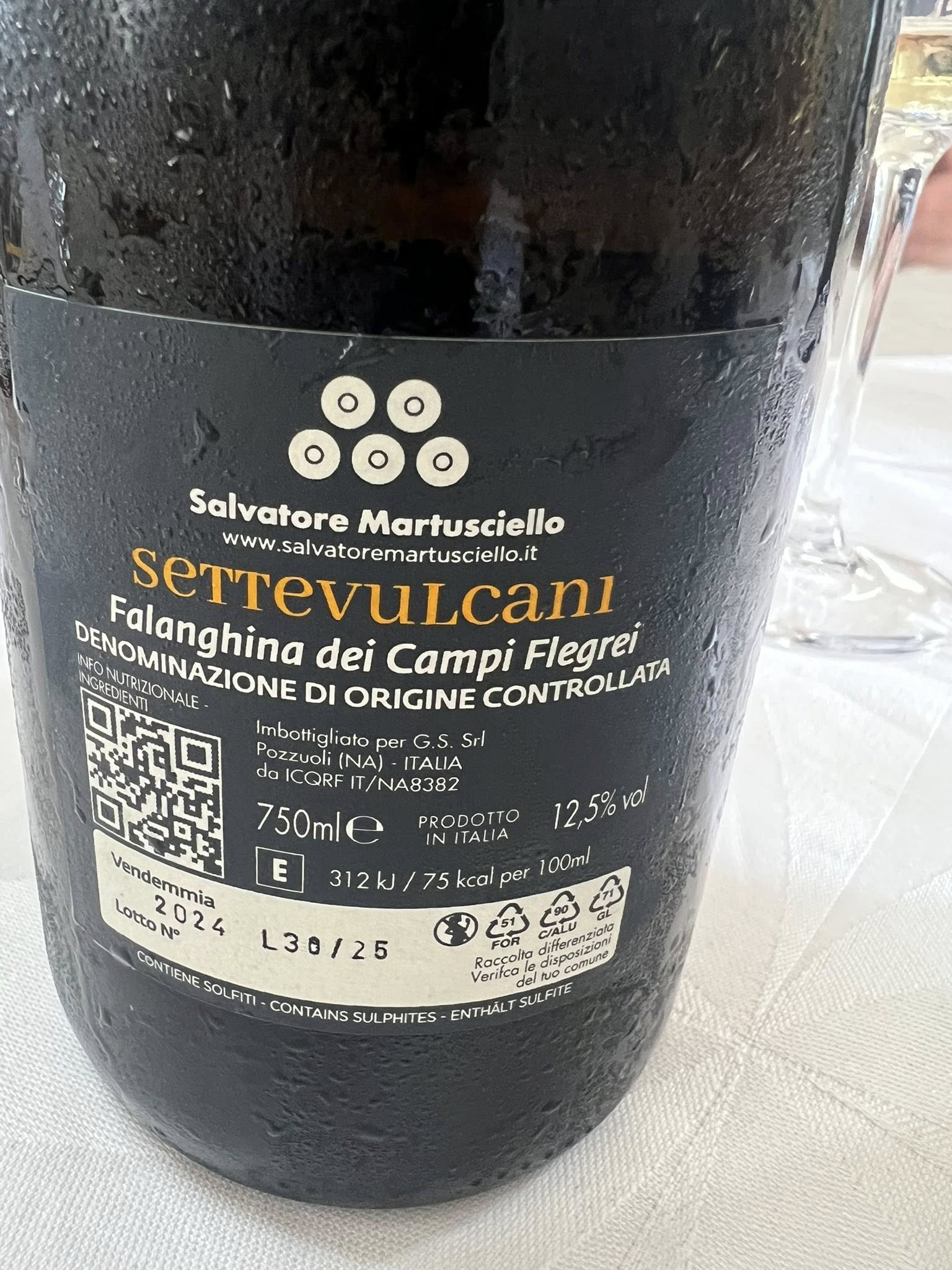 Gilda e Salvatore finalmente riescono a mettere qualche punto fermo: per esempio la nuova cantina a Giugliano che per soli 50 metri non è nel comune di Pozzuoli. Un approdo indispensabile per poter guardare lontano e riprendere, per esempio l’etichetta Costa Cume lanciata d Grotte per lavorare sulle incredibili potenzialità della Falanghina dei Campi Flegrei, un vino vulcanico di grande spessore e di eccezionale longevità come abbiamo potuto vedere anche provando una 2018 e una 2017 di Settevulcani. A proposito di questa etichetta, ci è passata sotto il naso la 2024 che troviamo eccezionale con note agrumate immerse in un contesto fumé al naso, decisamente fresca e di buon corpo al palato con un finale preciso e amaro che la rende abbinabile anche a piatti strutturati. L’uva nasce lì dove sbarcarono i coloni greci dove ora c’ è il Parco Archeologico di Cuma.