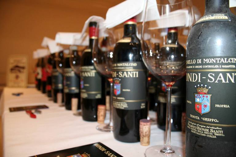 Nel frattempo la sala convegni si trasforma in sala degustazione per poter degustare i vini della storica azienda Biondi Santi, una famiglia che da secoli produce un nettare chiamato Brunello di Montalcino.