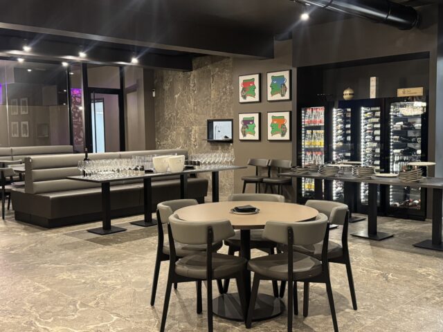 L’anima del locale è tutta nel design: legno, ferro, corian e pietra. La scelta dei materiali e delle luci soffuse e calde, racconta un’idea di ospitalità elegante. Il comfort è la nuova parola d’ordine: i coperti passano da 90 a 70 per offrire più spazio, ampi tavoli e sedute comode in pelle. Alle pareti quadri contemporanei e tende in velluto.