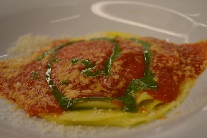 Demuro, da parte sua, ha proposto le sue tradizioni culinarie, sconosciute ai più, la cucina lucana non è così diffusa come quella campana. Piatti saporiti, equilibrati creati con grande fantasia. La miglior proposta personalmente è stato il primo piatto “Ricotta, pomodor e b…asta”, un raviolone al pomodoro ripieno di ricotta con limone e cannella, con salsa di basilico, ottimo, equilibrato, ma soprattutto delicato al palato.