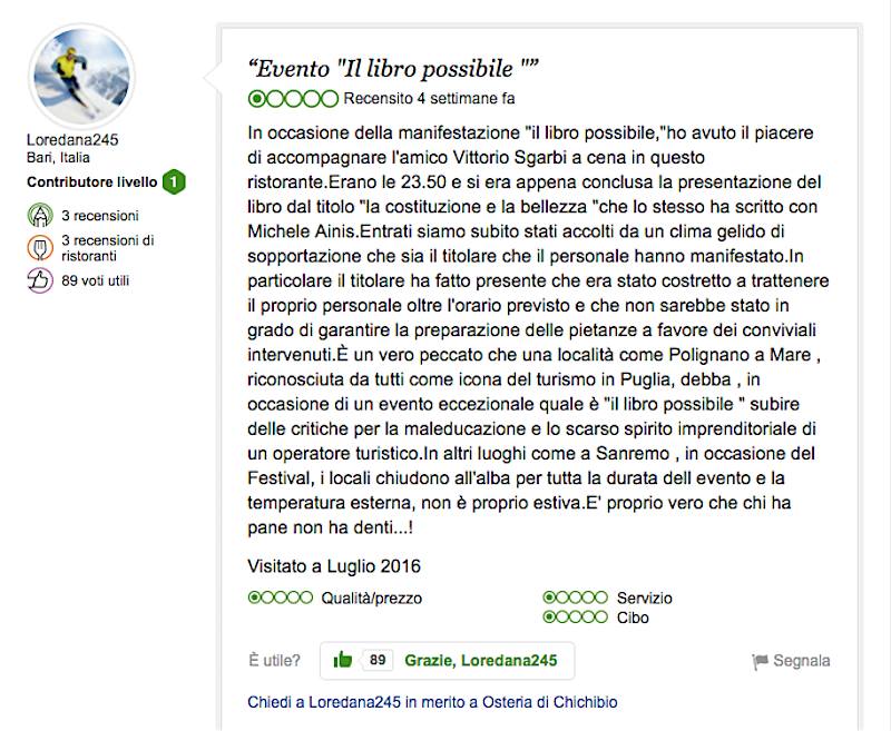 Chichibio protesta su Tripdavisor