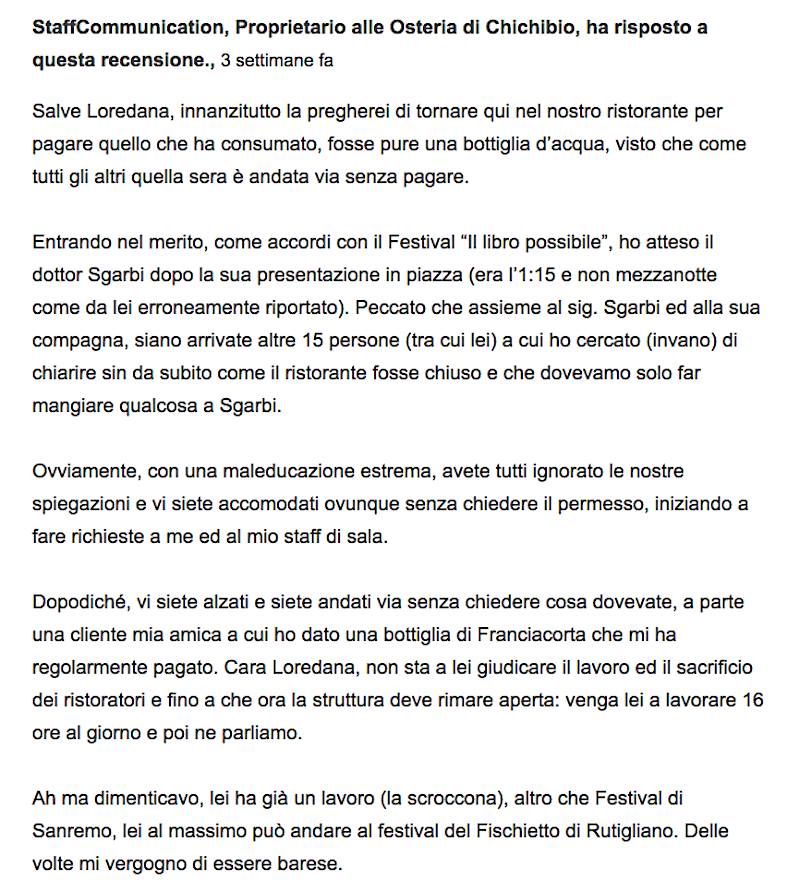 Tripadvisor risposta Chichibio