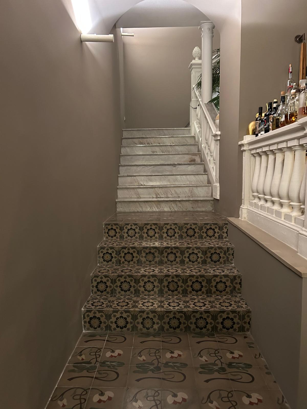 Vi si accede tramite una magnifica scala rivestita in maioliche siciliane, che ne anticipano con eleganza lo stile.