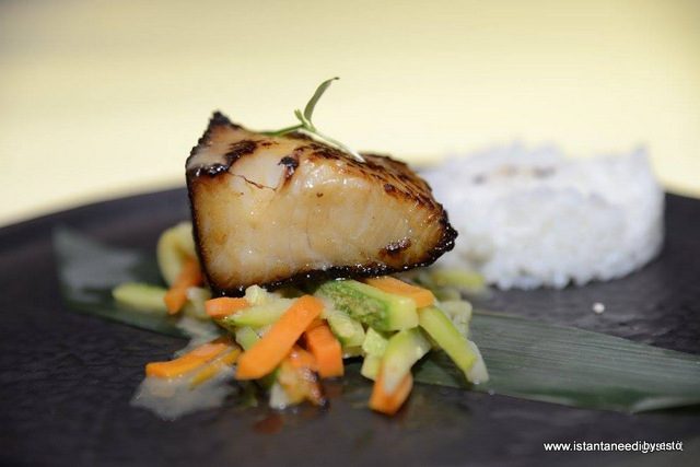 E poi il Black Cod con verdure e riso. Ben fatto questo trancio di pesce che viene dall’Alaska