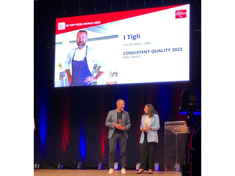 Simone Padoan, titolare de I Tigli a San Bonifacio (VR) è salito sul palco per ritirare il Consistensy and Quality Global Robo Award, riconoscimento assegnato per aver mantenuto un’offerta di altissima qualità per oltre vent’anni (quasi 30 ormai nel caso di Simone Padoan).“È ciò che facciamo da quasi 30 anni: garantire qualità, senza mai scendere a compromessi – ha dichiarato sul palco Simone Padoan – Questo è il nostro modo di fare pizza e di interpretare il mondo. Fare e fare bene per noi è una filosofia imprescindibile, quando arrivano i momenti di crisi, testa bassa e pedalare”.