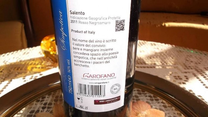 E la tradizione di successi continua, col supporto dei figli Stefano e Renata, con altre bottiglie, tipo il Simpotica Negroamaro Salento Igp, confezionata con una punta di montepulciano, di cui ho recentemente degustato il millesimo 2011. Nuova veste grafica, ma antica e costante qualità di un vino che nel nome richiama il famoso simposio dell’antica Grecia, che soleva rappresentare la celebrazione conviviale di godere insieme i piaceri della vita del buon bere e del mangiare. Maturazione per circa un anno e mezzo in legno piccolo e vetro. Tasso alcolico di quattordici gradi.