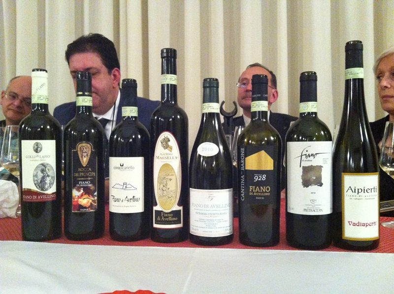 Il primo vino è il Fiano di Avellino DOCG di Ciro Picariello, annata 2010, titolo alcolemico 13,5%, fermentazione solo acciaio inox. Colore giallo paglierino, limpido e di buona consistenza. All’olfatto è fruttato, minerale, agrumato. Al gusto è fresco, salino, con un finale minerale. Vino snello ma ricco. Persistente.
